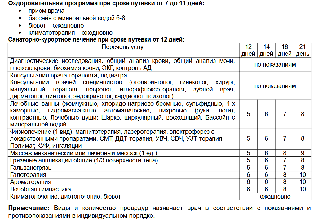 - дети с 2-х до 4-х лет без предоставления места и лечения, оплата питания на месте в кассу санатория - 800 руб/сутки (с июня по сентябрь) / 700 руб/сут низкий сезон
