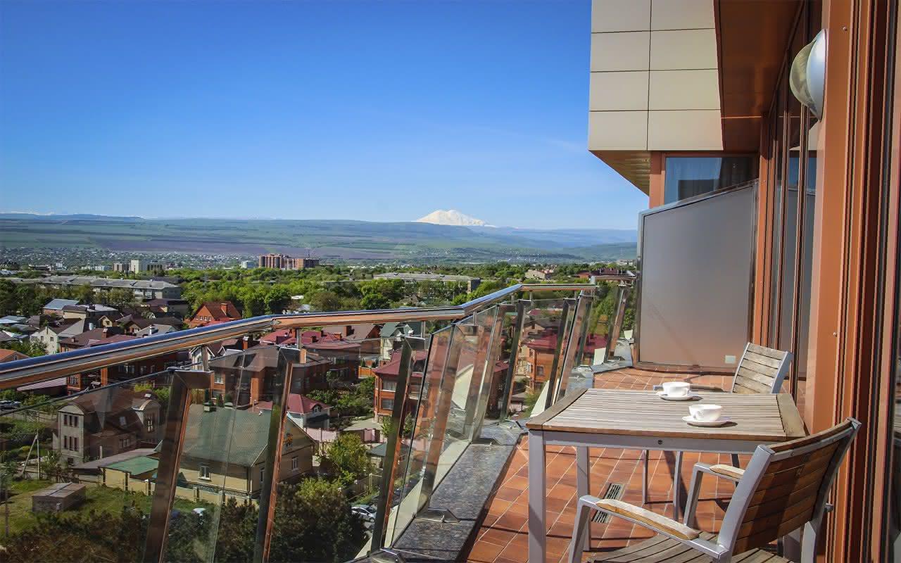 Из окон ресторана открывается волшебный вид на город и горы – Бештау, Машук, Юцу и Джуцу, в ясный день вы сможете увидеть во всем великолепии белоснежный Эльбрус и Большой Кавказский хребет.