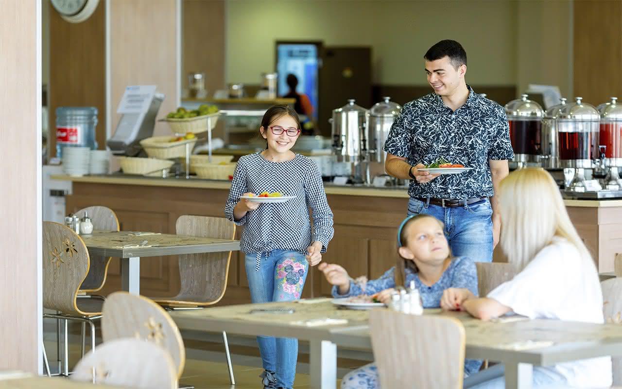 Удобный режим работы: завтрак с 08-00 до 10-00, обед с 13-00 до 15-00, ужин с 18-00 до 20-00.