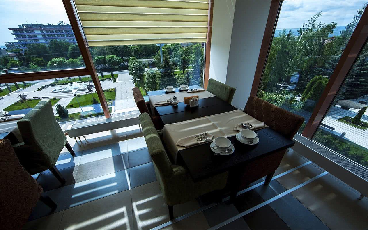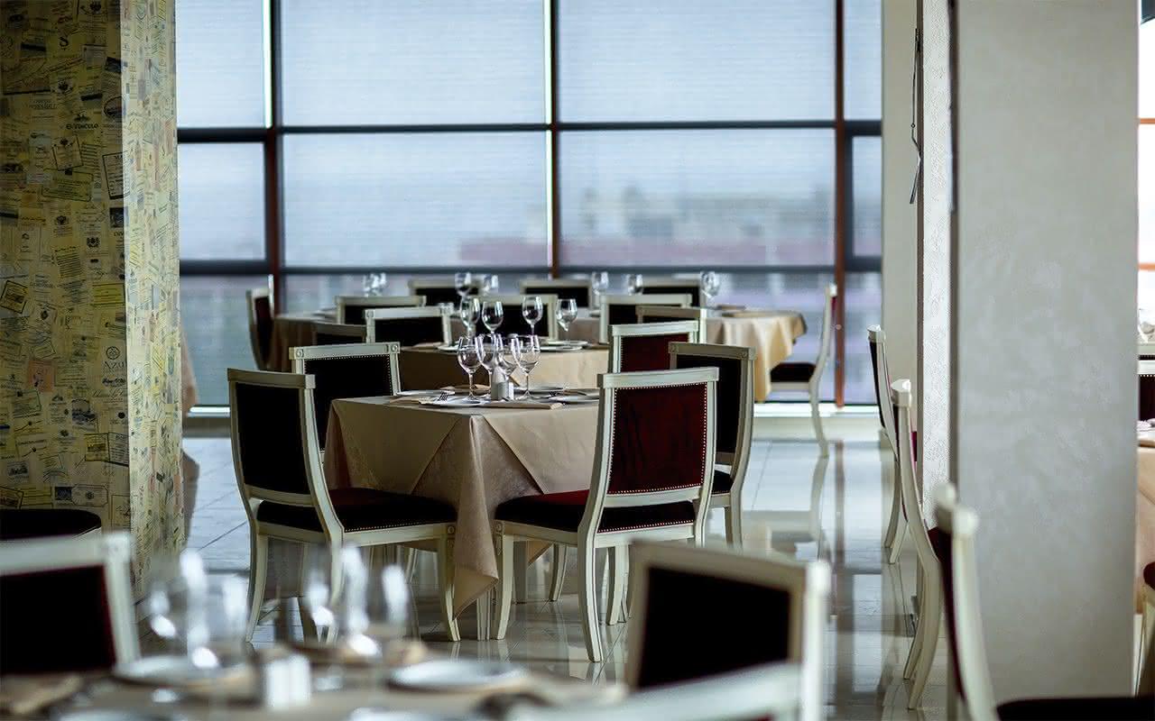 Ресторан «Дольче Вита» с панорамными окнами, расположенный на самом верхнем этаже корпуса «Машук».