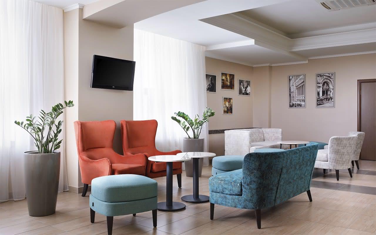 Лобби-бар предлагает Гостям полноценное меню - здесь всегда можно заказать холодные и горячие закуски, салаты, брускетты, сэндвичи и пасты, блинчики и шоколадные роллы, молочные коктейли или любимые безалкогольные напитки, мороженое, ароматный кофе, разные виды чая, смузи, свежие соки и прохладительные напитки.