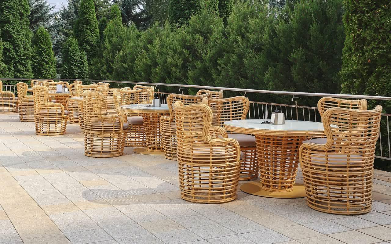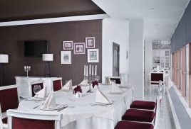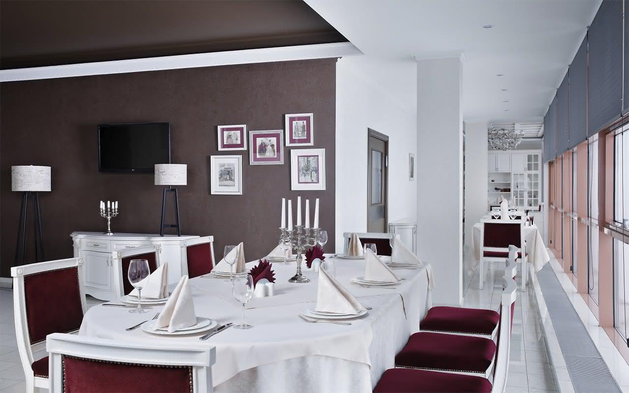 В меню ресторана изысканные деликатесы, блюда из мяса, птицы и морепродуктов, закуски, чудесные десерты.
