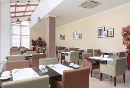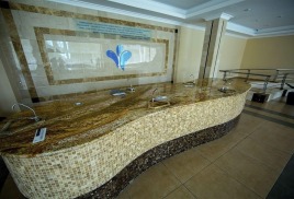 Уютный и камерный VIP-зал питания «Сан Сити» расположен на 4 этаже корпуса «Бештау», между жилыми корпусами «Машук» и «Эльбрус». Он рассчитан всего на 60 мест и предназначен для питания Гостей, отдыхающих в номерах категории «Студия», «Сьют», «Люкс», «Восточный Люкс» и «Президентские апартаменты».