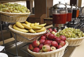 Ежедневно в меню для наших Гостей Шведский стол из более чем 100 наименований диетических блюд на любой вкус. Каждый день – новое меню, которое не повторяется в течение 14 дней. Для Гостей «Сан-Сити» в меню дополнительно есть апельсиновые фреши, несколько видов орехов, еще больше фруктов (ананасы, гранаты, клубника, абрикос, киви, инжир или виноград*), несколько видов чая и кофе.