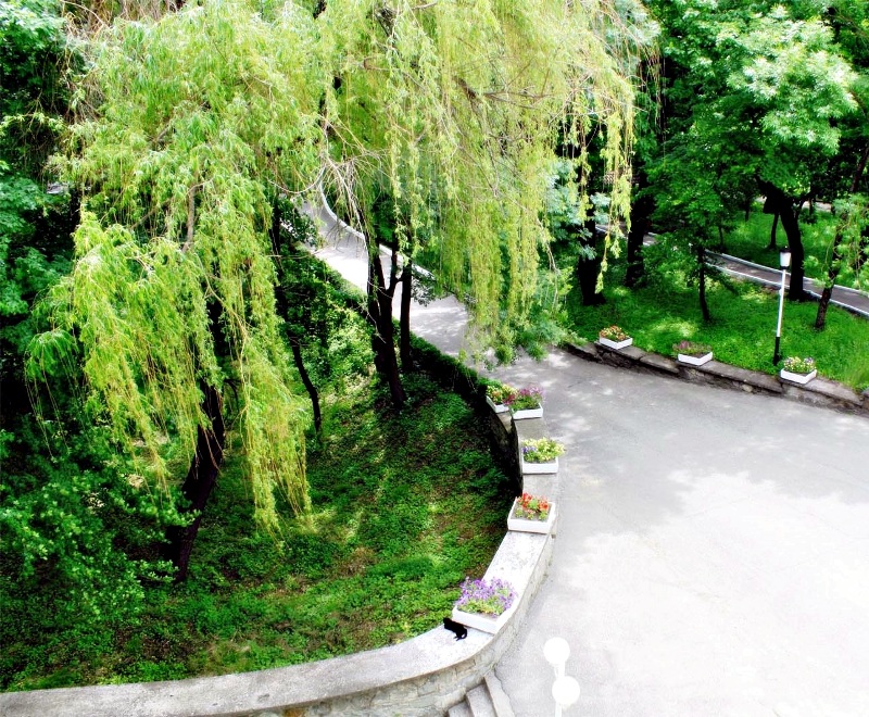 Из окон санатория открываются чарующие взор пейзажи, с видами на горы Бештау, Медовая, Острая, Тупая.