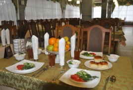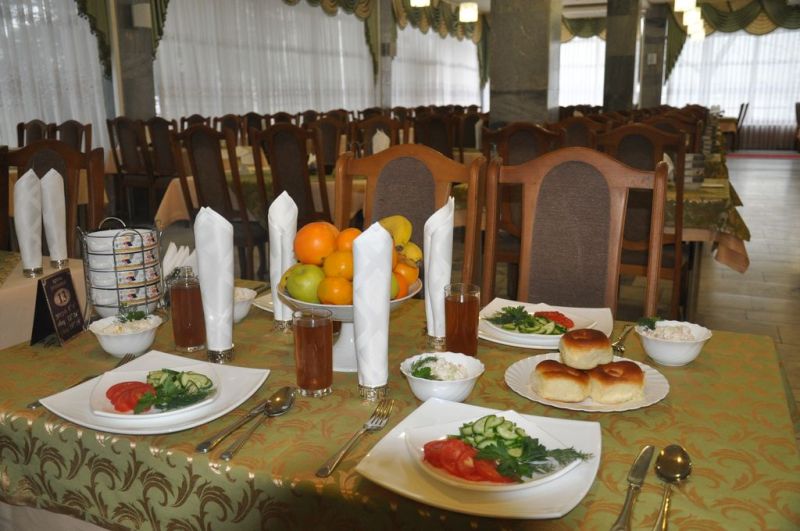 Лечебные диеты, применяемые в санатории, являются физиологически полноценными, то есть содержат физиологические нормы белков, жиров, углеводов, витаминов, минеральных солей. Диетпитание в санатории организованно по системе предварительных заказов в соответствии с диетами, назначаемыми лечащими врачами. По индивидуальным показаниям назначают суточные режимы - контрастные диеты (разгрузочные дни), название которых соответствует их продуктовому составу (молочный, творожный, яблочный, кефирный, арбузный, картофельный день) и специальные диеты (калиевая, магниевая диеты).