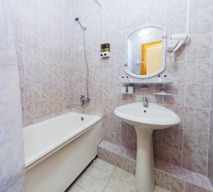 - 1-но местный номер 1 категории. Площадь 13 кв. м.. В номере: односпальная кровать, санузел (душ с поддоном или душевая кабинка, раковина, туалет), телевизор, холодильник, сейф, электрочайник.