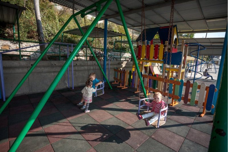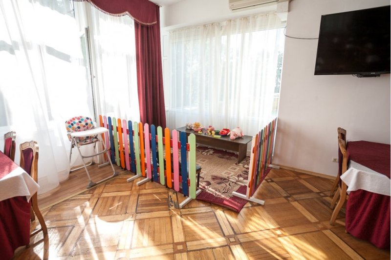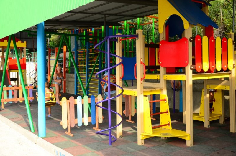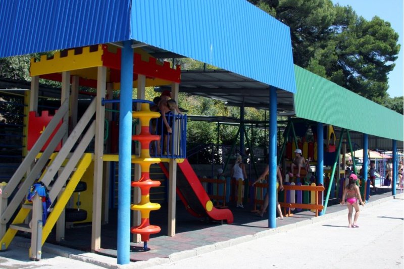 На территории санатория и пляже оборудованы детские развлекательные площадки, где есть качели, тенистые песочницы, детские горки, различного рода лазалки. На пляже имеется еще и детский участок общей длиною около 50 метров с мелкой галькой, где детвора имеет возможность поплескаться в теплой морской воде.