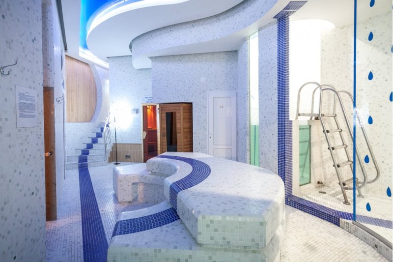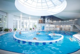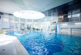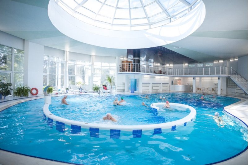 Крытый бассейн с пресной водой, площадь зеркала 196 кв.м., работает круглогодично, пользование входит в стоимость.