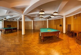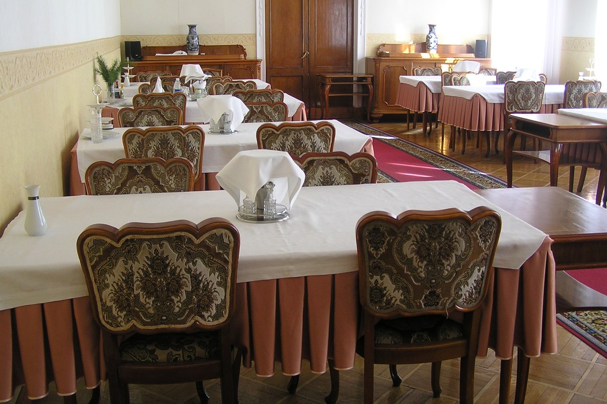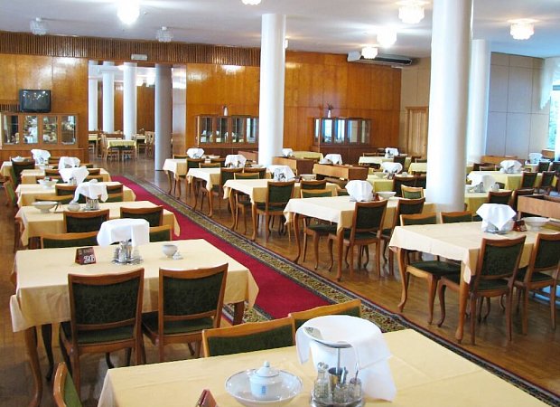 Питание организовано в большом зале столовой на 200 посадочных мест по системе «шведская линия». Зал оборудован кондиционерами, линией самообслуживания, тепловыми мармитами. Если отдыхающих менее 50 человек, то питание по заказному меню.