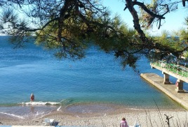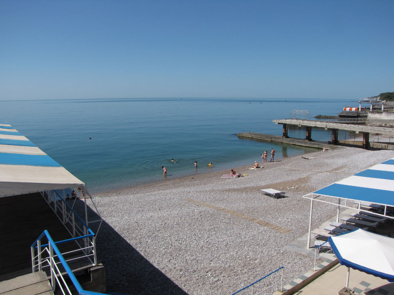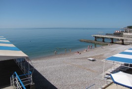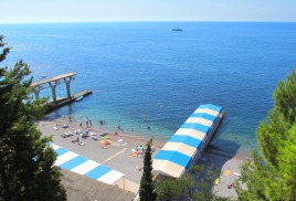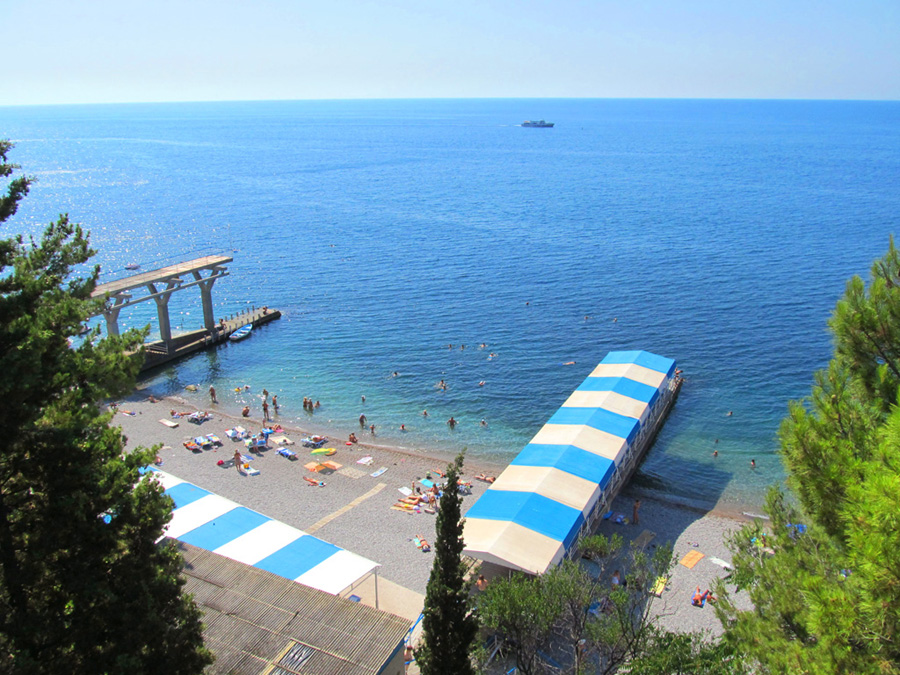 Пляж санатория «Дюльбер» – изолированная мелко-галечная полоса пляжа, которая защищена от штормовых волн волнорезами. Пляж оборудован всем необходимым. От корпусов к пляжу ведут широкие аллеи парка для неспешного спуска (около 20 – 60 м), а для тех, кто хочет быстрее спуститься на набережную – несколько удобных коротких лестничных маршей.