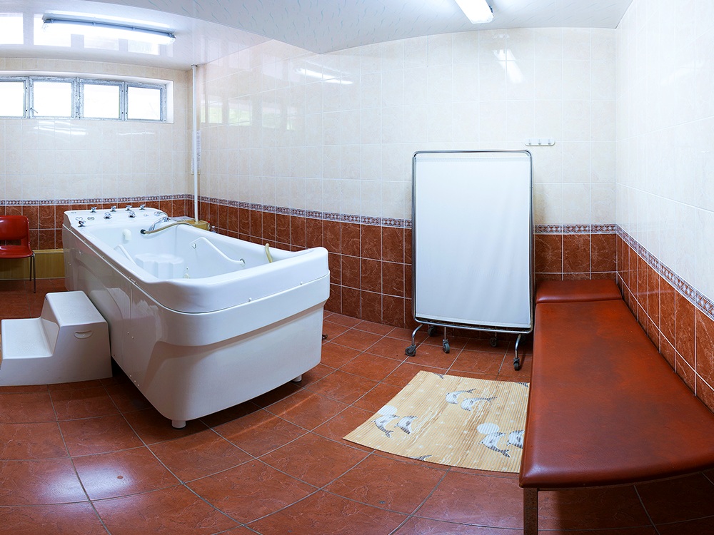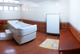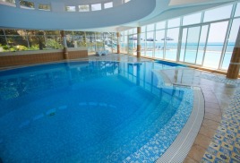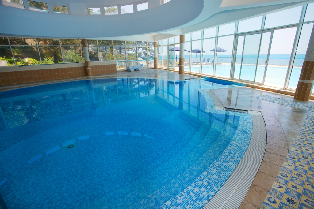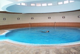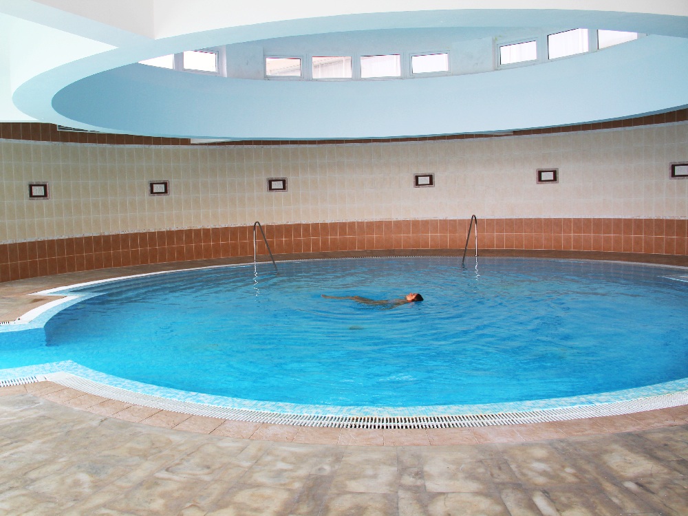 Крытый бассейн подогреваемый, с морской водой, работает круглый год. Диаметр 11,8м , глубина 1,25м, объем 100м.куб.
