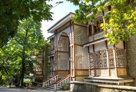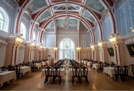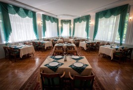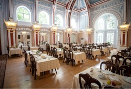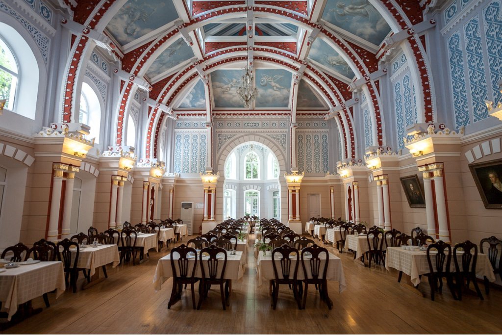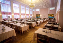 Столовая с четырехразовым лечебным питанием расположена в старинном зале ресторана «Фонтан», построенный в 1885 г. в неоготическом стиле, созданный только из деревянных конструкций.