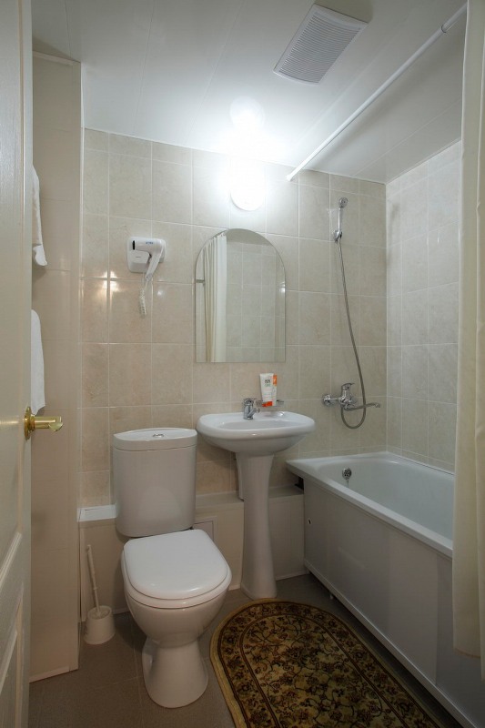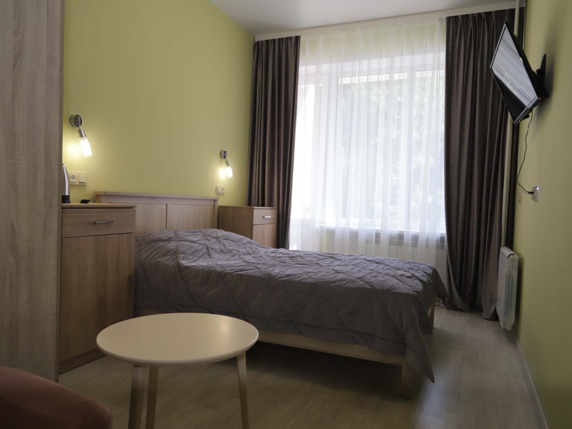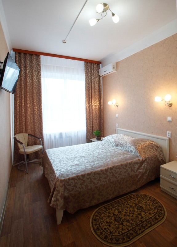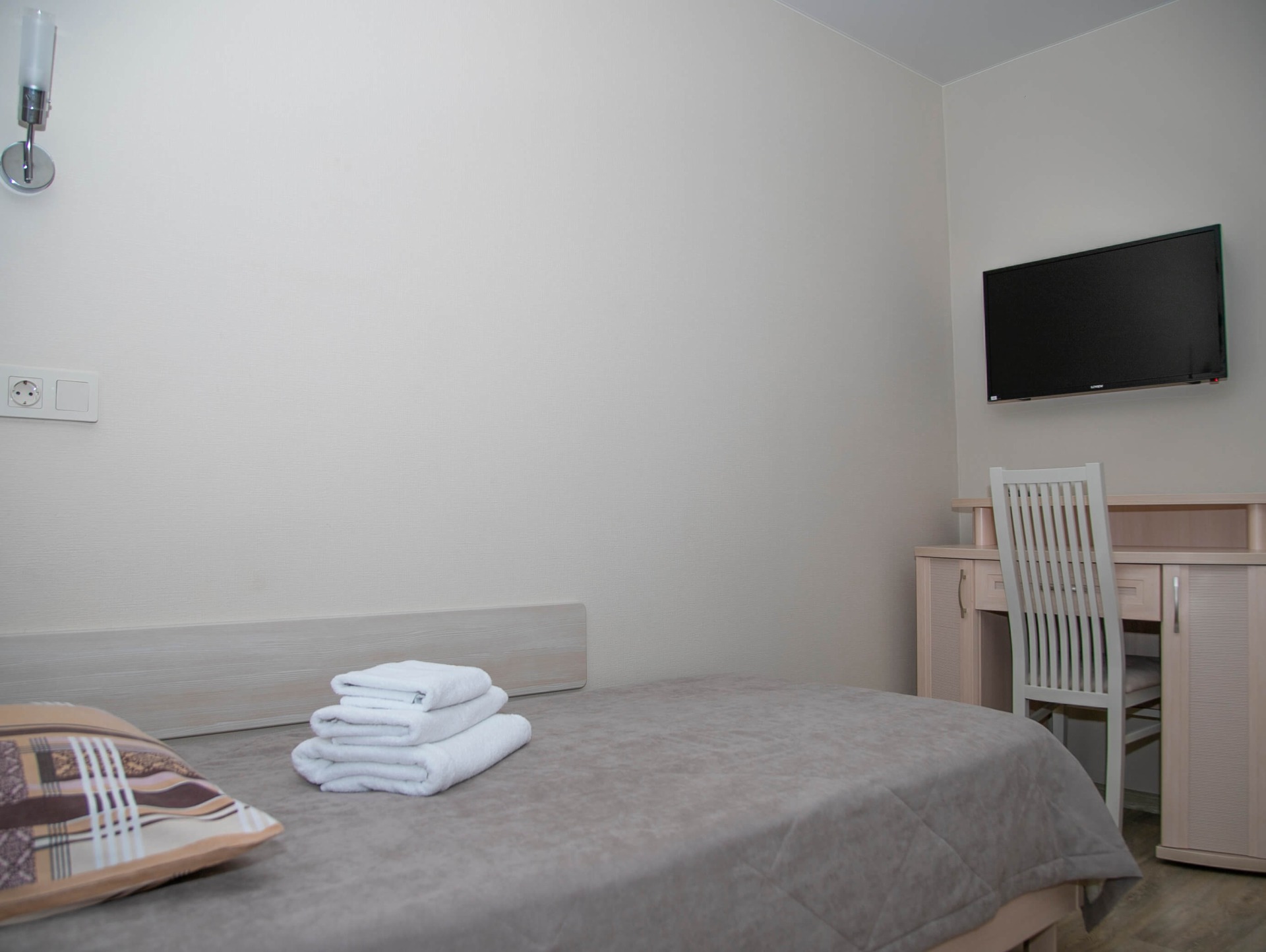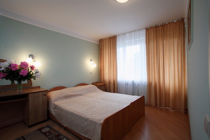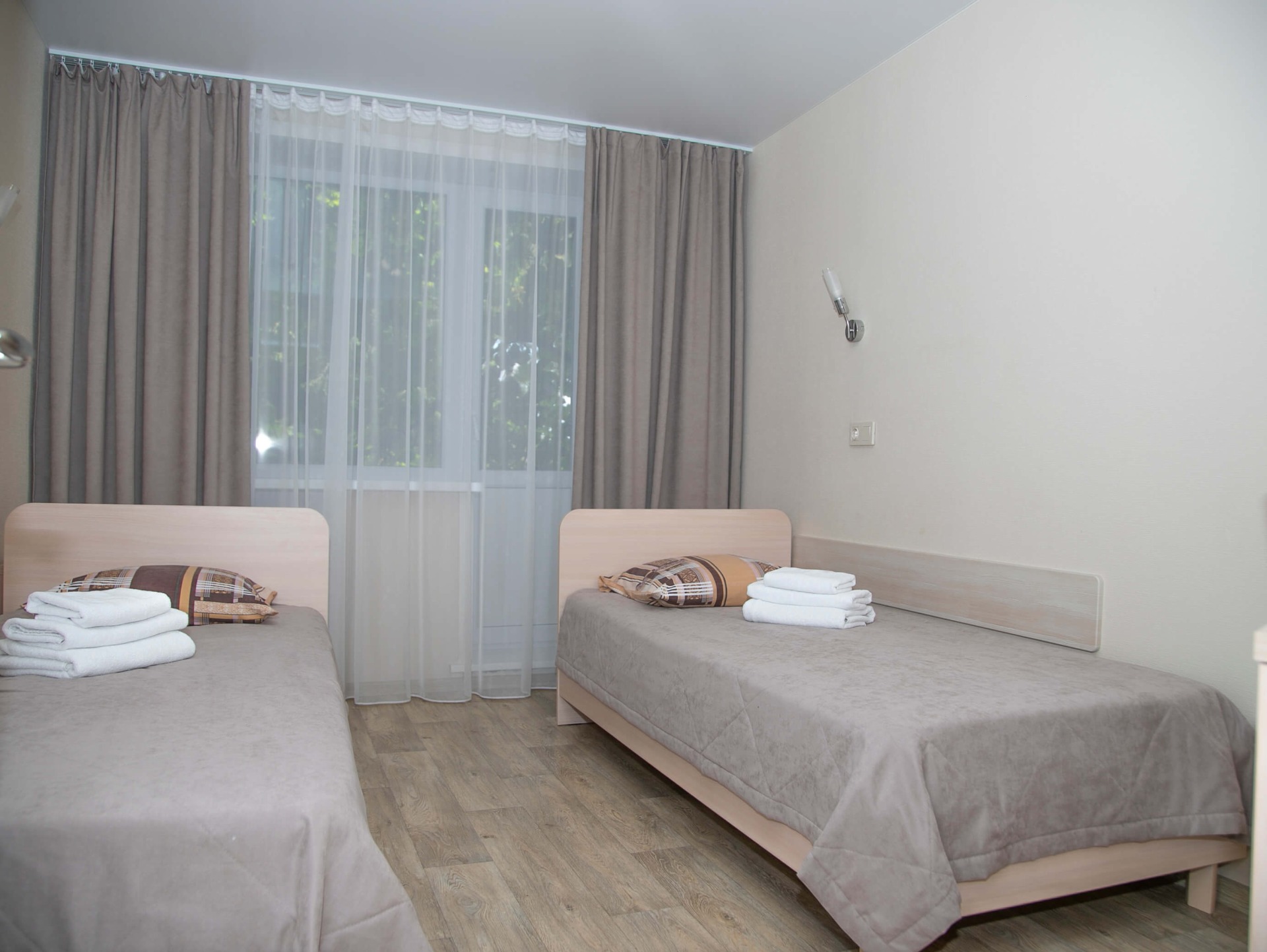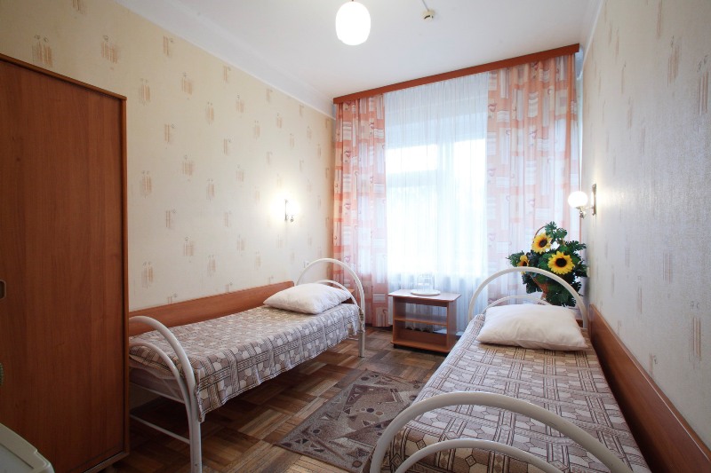 - 2х-местный 1но-комнатный номер «Стандарт» состоит из спальни, ванной комнаты, прихожей и балкона. Оснащение номера: две односпальные кровати; ТВ; холодильник; набор посуды. При необходимости предоставляется одно дополнительное спальное место. Оснащение ванной комнаты: туалет; ванная или душевая кабина.