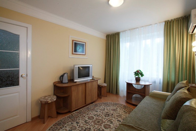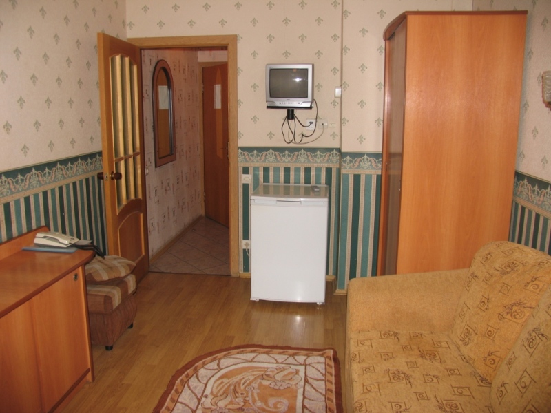 - 1но- местный 1-комнатный номер «Полулюкс» - это номер повышенной комфортности площадью 19 кв.м, состоящий из спальни, прихожей, ванной комнаты и балкона. Оснащение номера: диван или кровать 80см (с кроватью пара номеров всего); ТВ; холодильник; чайник; набор посуды. При необходимости предоставляется одно дополнительное спальное место. Оснащение ванной комнаты: туалет; ванна или душевая кабина; фен.