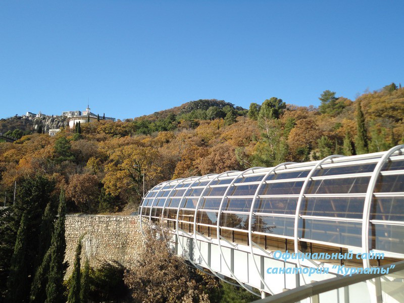 Санаторий находится в одноименном поселке городского типа всего в 8 километрах от Ялты и уже много лет считается лучшей здравницей Южного Берега Крыма. В Курпатах удивительно все – сам городок надежно защищен от холодных ветров и прочего ненастья, там приятно отдыхать даже зимой. Такой климат благоприятен для многих теплолюбивых растений, который делают и так уникальный крымский пейзаж еще интереснее.