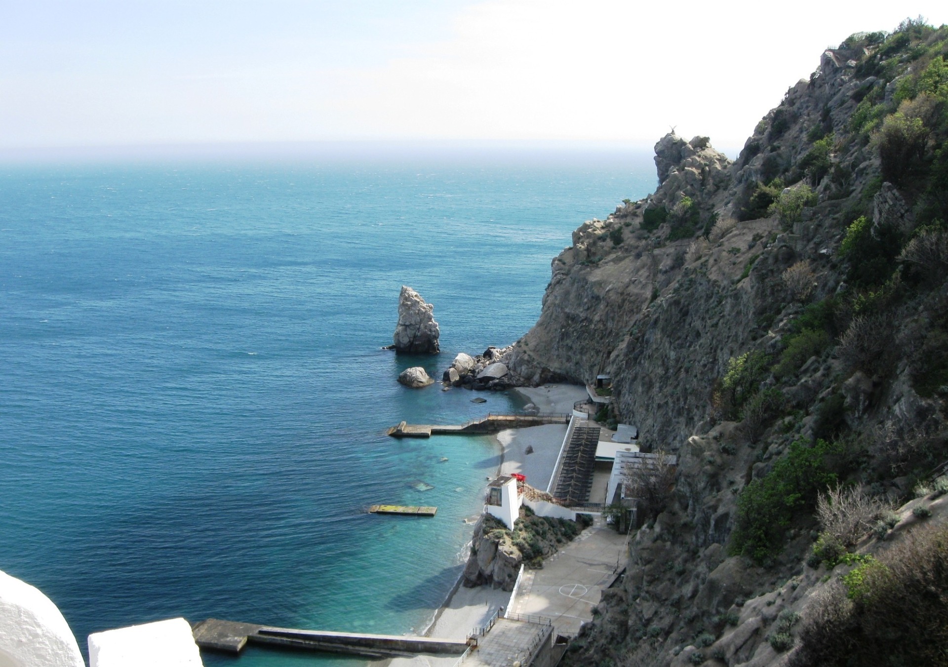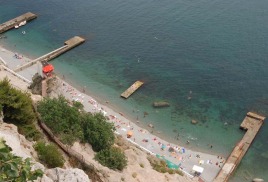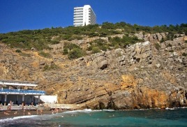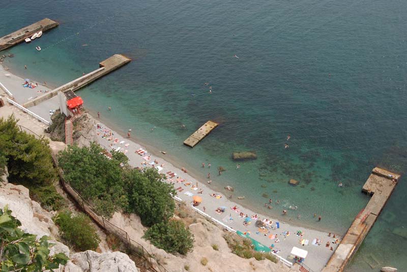 В начале 70-х годов прошлого столетия в санатории «Парус» был построен уникальный рукотворный пляж с небольшой прогулочной набережной, на который гостей санатория доставляет скоростной лифт (шахта лифта 75 метров и 90 метров тоннель, прорубленные в скале).