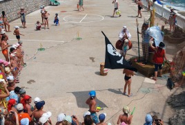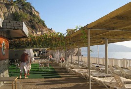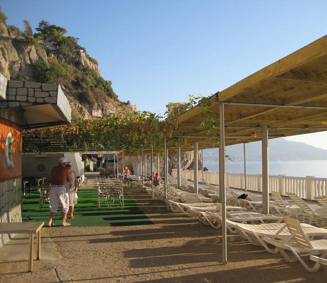 Территория оснащена шезлонгами, душевыми и туалетами. Рядом находится летнее кафе-бар. Живая музыка, широкий ассортимент блюд и радушное обслуживание скрасят отдых в санатории.