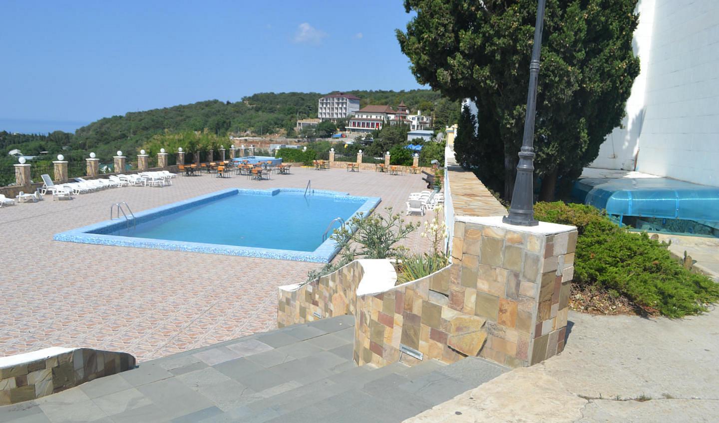 На территории санатория построен открытый летний плавательный бассейн с пресной водой (15х6 м) и большой видовой площадкой. С территории бассейна открывается великолепный вид на «Ласточкино Гнездо» и гору «Ай-Петри».