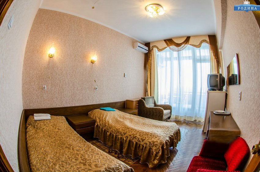 - 2-местный 1-комнатный Стандарт юг. В номере: две раздельные, телевизор, холодильник, балкон, санузел. Номера расположены на 1-4 этажах, вид на море, парк.