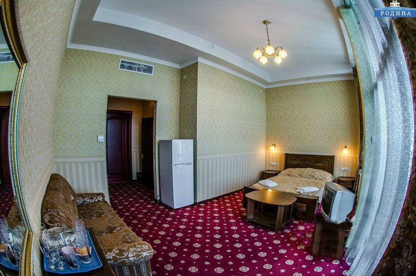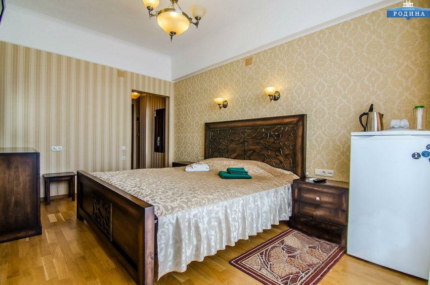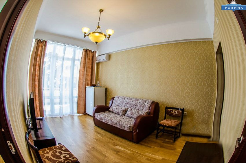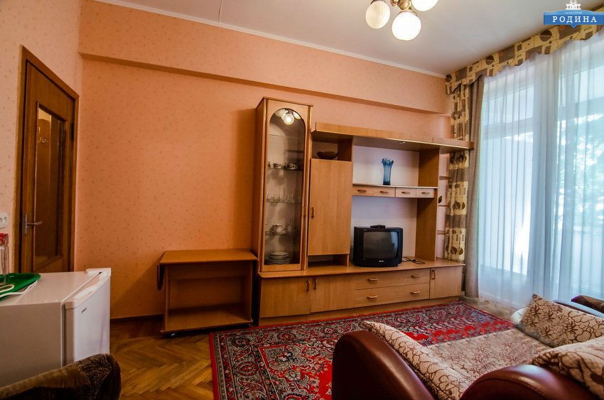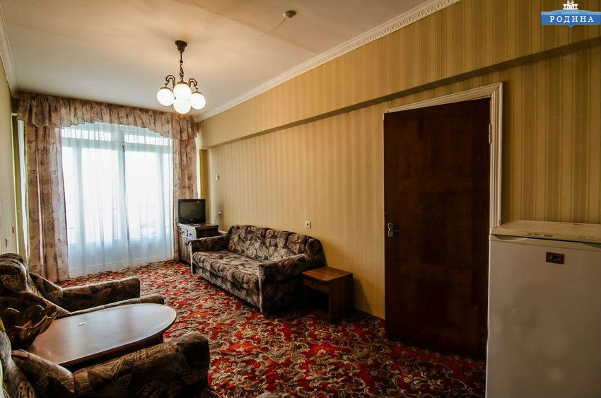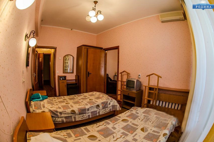 - 2-местный 2-комнатный повышенной комфортности юг. В номере: спальня с двуспальной кроватью, гостиная с мягкой мебелью, телевизор, кондиционер, холодильник, чайник, балкон, фен, санузел. Номера расположены на 2-3 этажах.