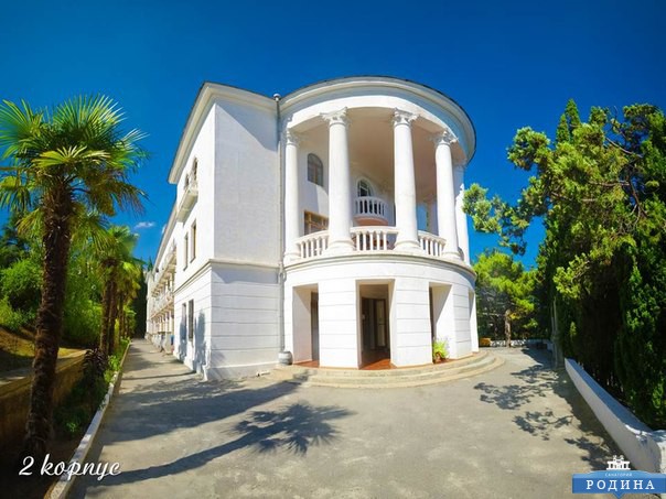 5-этажный с лифтом, 200 метров от пляжа пешком через парк или с помощью лифта от корпуса№2. К корпусу ведут ступеньки. Здесь располагается библиотека, бильярдный зал, массажные кабинеты.