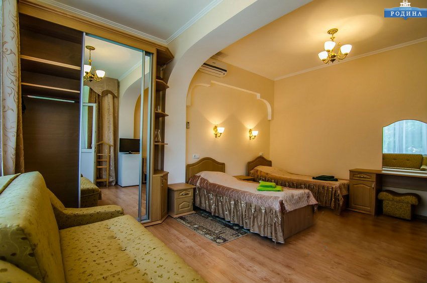 - 2-местный 2-комнатный повышенной комфортности юг. В номере: спальня с двумя раздельными кроватями, гостиная с мягкой мебелью, телевизор, кондиционер, холодильник, балкон, санузел. Номера расположены на 2-4 этажах.