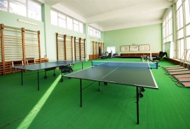 Крытый бассейн с морской водой и подогревом 25х12м (площадь зеркала воды 300 м.кв.), глубина до 3м. Бассейн работает сезонно (ориентировочно с октябрь по май в зависимости от погоды)