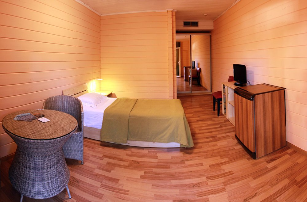 - 1-местный Стандарт. Площадь: 18-22 кв.м. В номере: современный дизайн, качественная деревянная мебель, односпальная кровать с ортопедическим матрацем, холодильник, ванная комната с душевой кабиной, фен, централизованная система отопления и кондиционирования.
