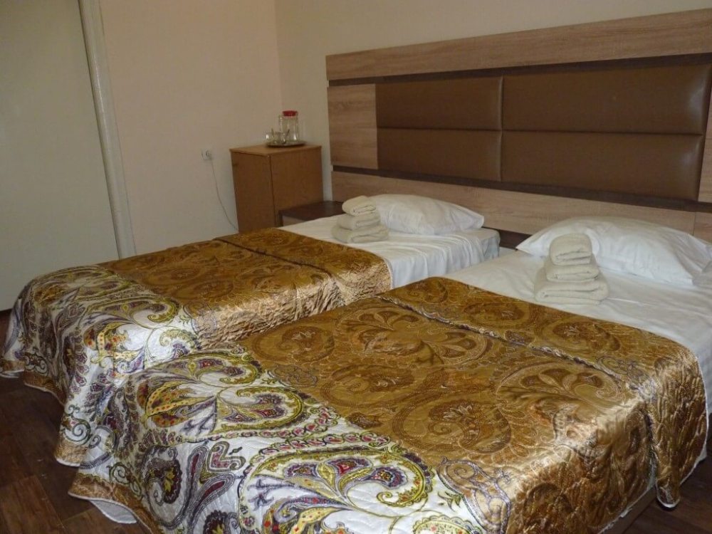 - 3-х местный Комфорт. Площадь: 18 кв.м. В номере: две раздельные кровати с ортопедическими матрацами, холодильник, LCD панель, ванная комната с душевой кабиной, электрочайник, фен, централизованная система отопления и кондиционирования.