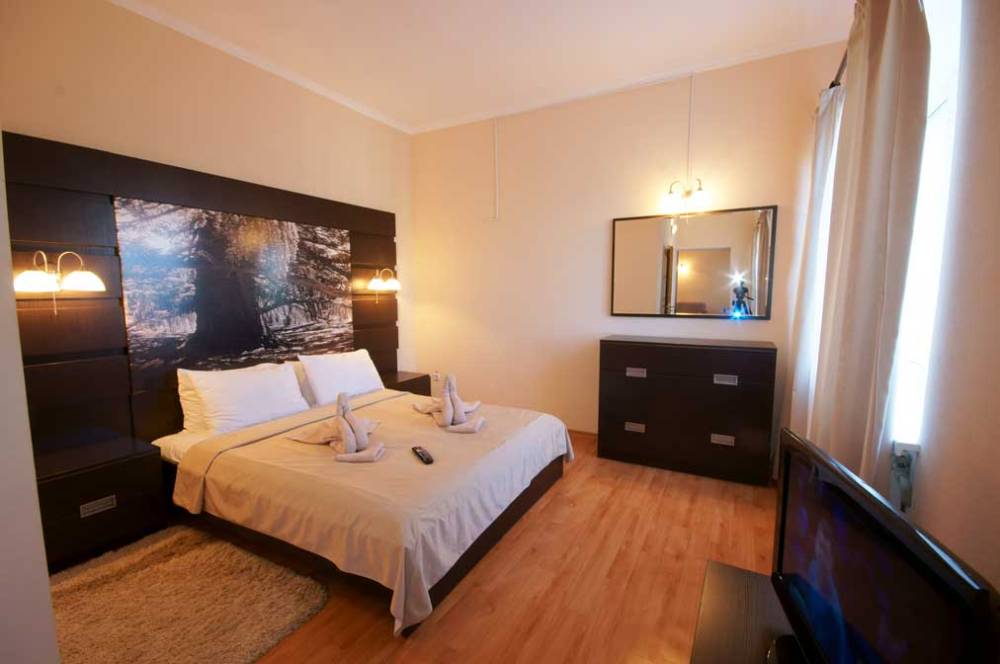 - 2-местный 2-комнатный Де Люкс. Площадь: 30 кв.м. В номере: спальня с двуспальной кроватью, гостиная с раскладным диваном, телевизор LCD в спальной комнате, DVD, ванная комната с душевой кабиной, сплит-система, кондиционер, сейф.