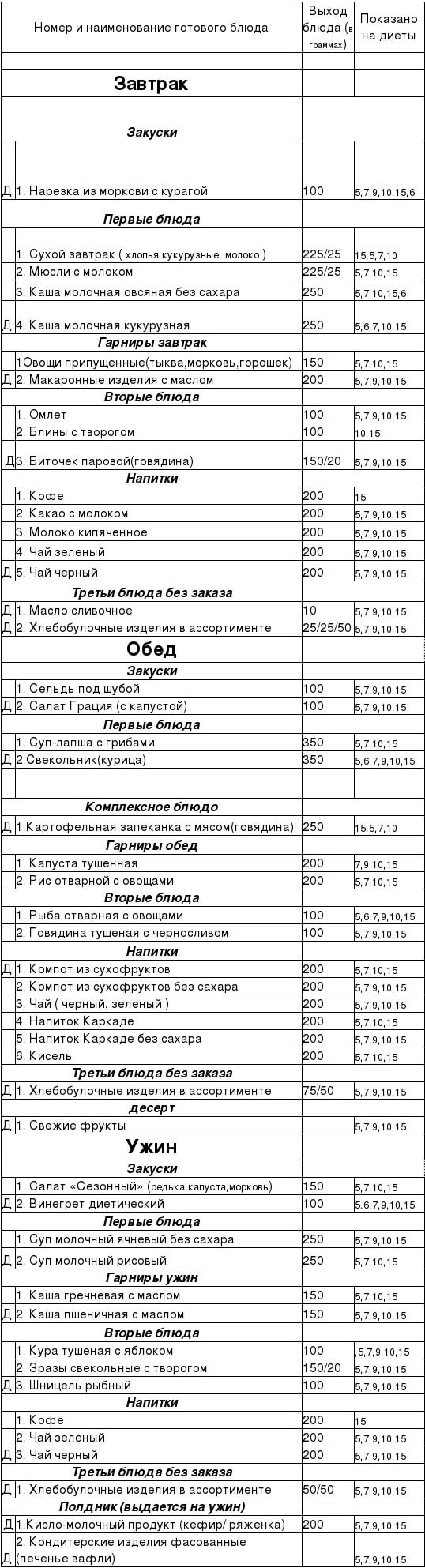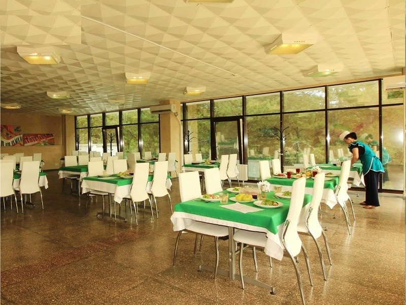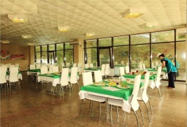 В санатории 3-х разовое питание по системе «шведский стол». Питание организовано в 2-х залах: общий зал и VIP-зал (для гостей, проживающих в номерах высокой категории).Ежедневно отдыхающие получают вкуснейшие традиционные и диетические блюда. Специалисты учитывают калорийность блюд и их насыщенность микроэлементами и витаминами. При необходимости гостям предписывается персональная диета. Она учитывает как состояние здоровья, так и выбранную санаторную программу.