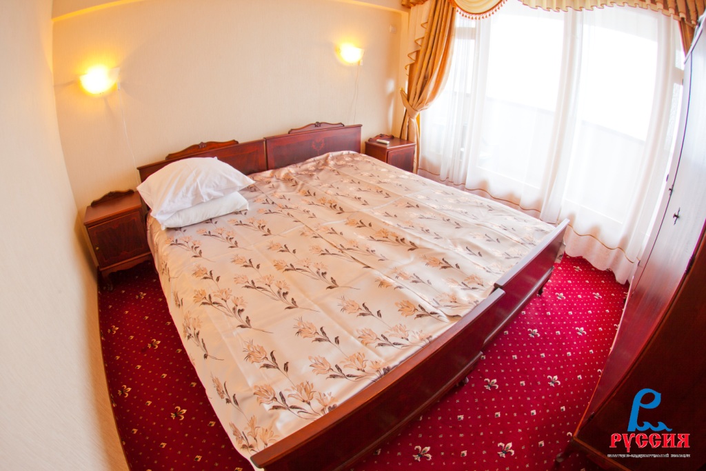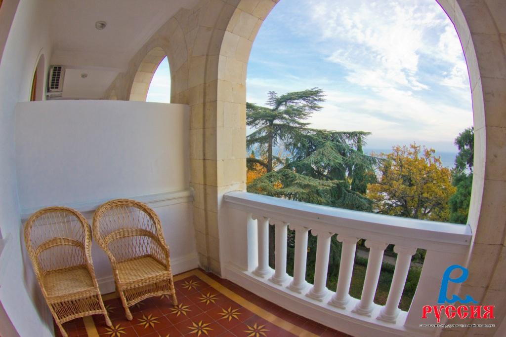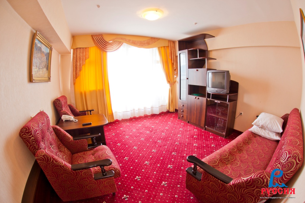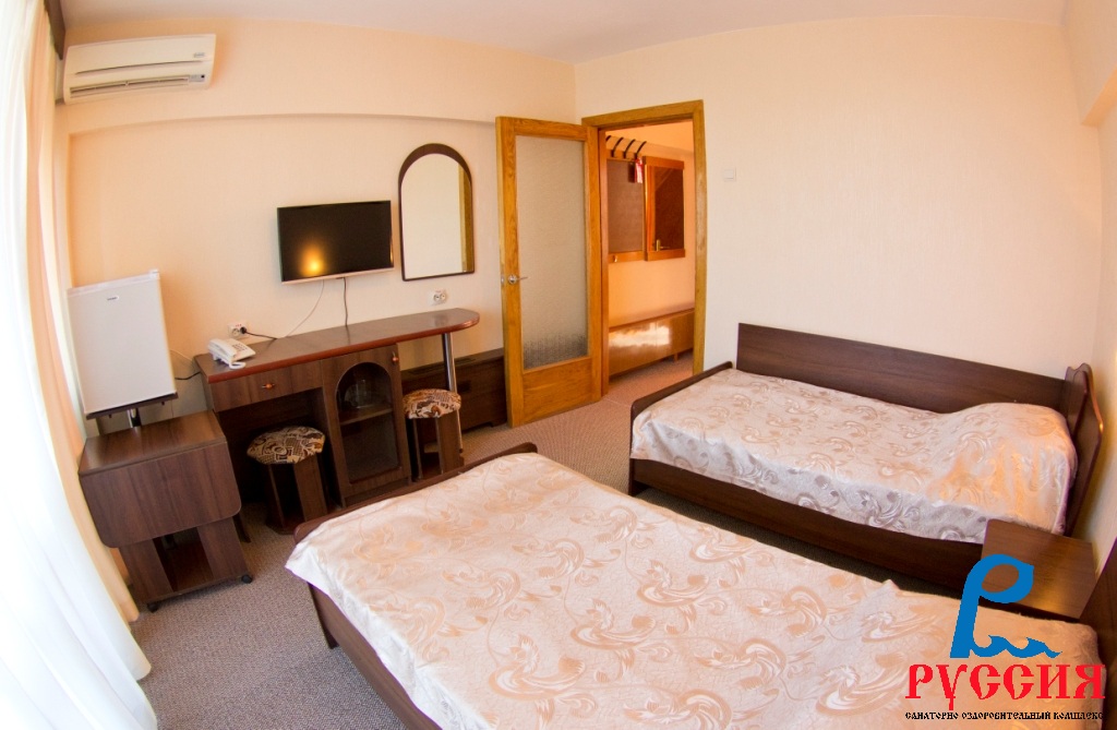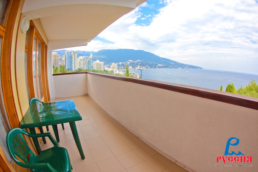 - 2-х местный 2-х комнатный номер. Площадь 22-24 кв.м. В номере: спальня с двуспальной кроватью, гостиная с мягкой мебелью, ТВ, холодильник, кондиционер, санузел. Балкон-терраса с набором летней мебели, вид на море или на парковую зону.