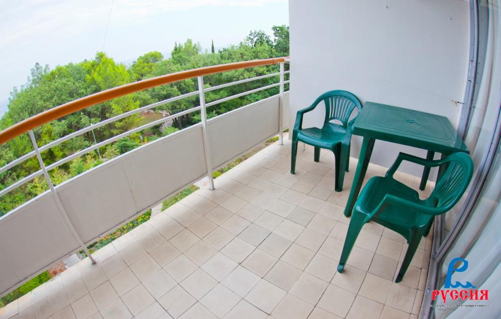 - 2-х местный 1-но комнатный стандарт. Площадь 11-12 кв.м.. В номере: две односпальные кровати, телевизор, холодильник, кондиционер, санузел. Балкон с набором летней мебели, вид на море.
