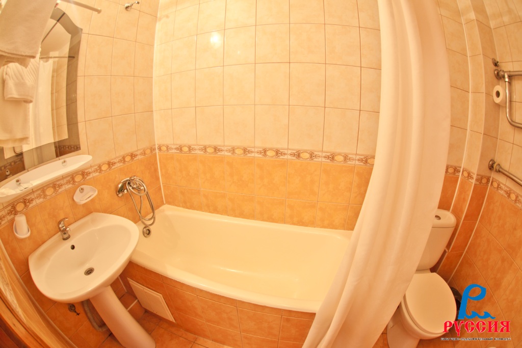 - 4-х местный 3-х комнатный Апартамент. Площадь комнат в номере –гостиная-16 кв,м, две спальни-13 кв.м. Номер состоит: прихожая, две ванных комнаты, гостиная, две спальни, две лоджии. В номере: в спальной комнате двуспальная кровать, шкаф, трюмо, в гостиной -набор мягкой мебели,сервант, набор посуды, электрочайник, обеденный стол, набор стульев, телевизор (кабельное ТВ), холодильник,кондиционер.На окнах - портьеры, тюль. Пол - паркет. Возможно 2 дополнительных места. На лоджии -комплект летней плетеной мебели.Вид - на море.