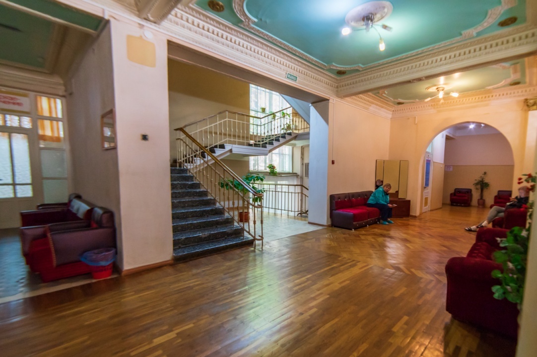 Согласитесь, не хочется выходить после приема ванн или бассейна на улицу, тем более, что прохладные дни в Кисловодске не редкость. У нас в санатории имеется 2 корпуса, которые соединены между собой - спальный корпус на 280 мест (имеются лифты) , а также лечебный корпус с отличным залом ЛФК.
