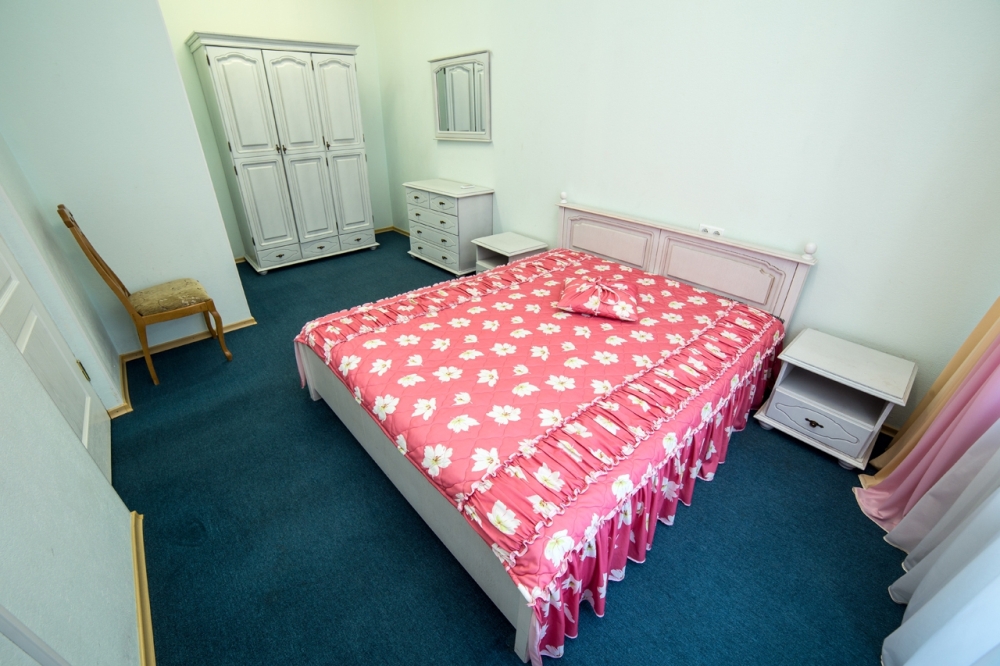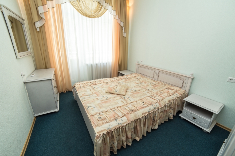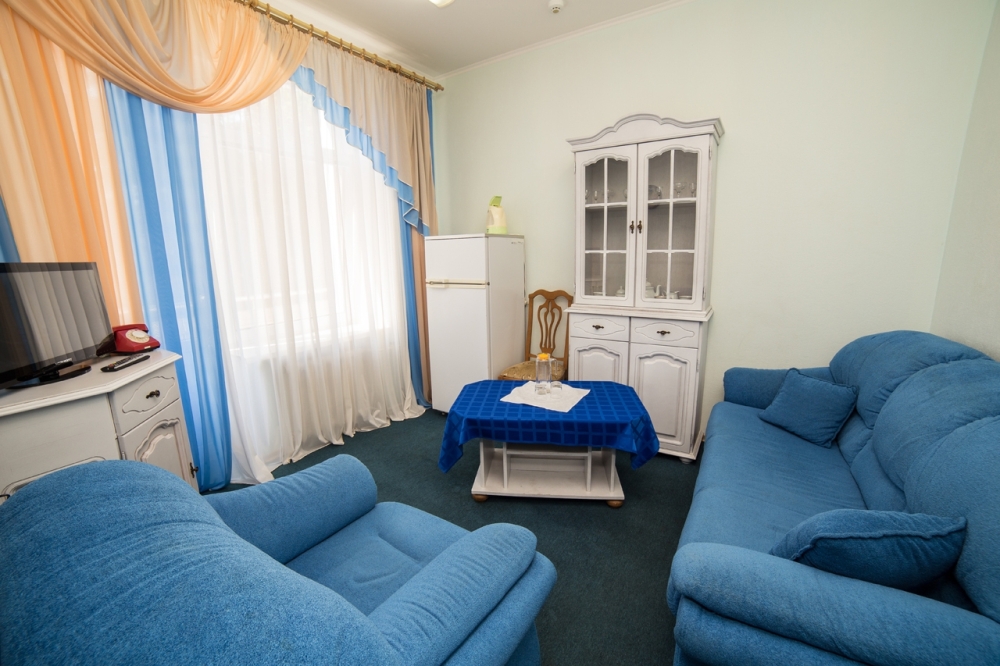 - 2-х местный 2-х комнатный номер улучшенный. В номере: двухспальная кровать, в гостиной мягкая мебель, ванная, туалет, ТВ, холодильник, кондиционер, электрочайник.