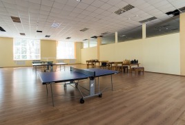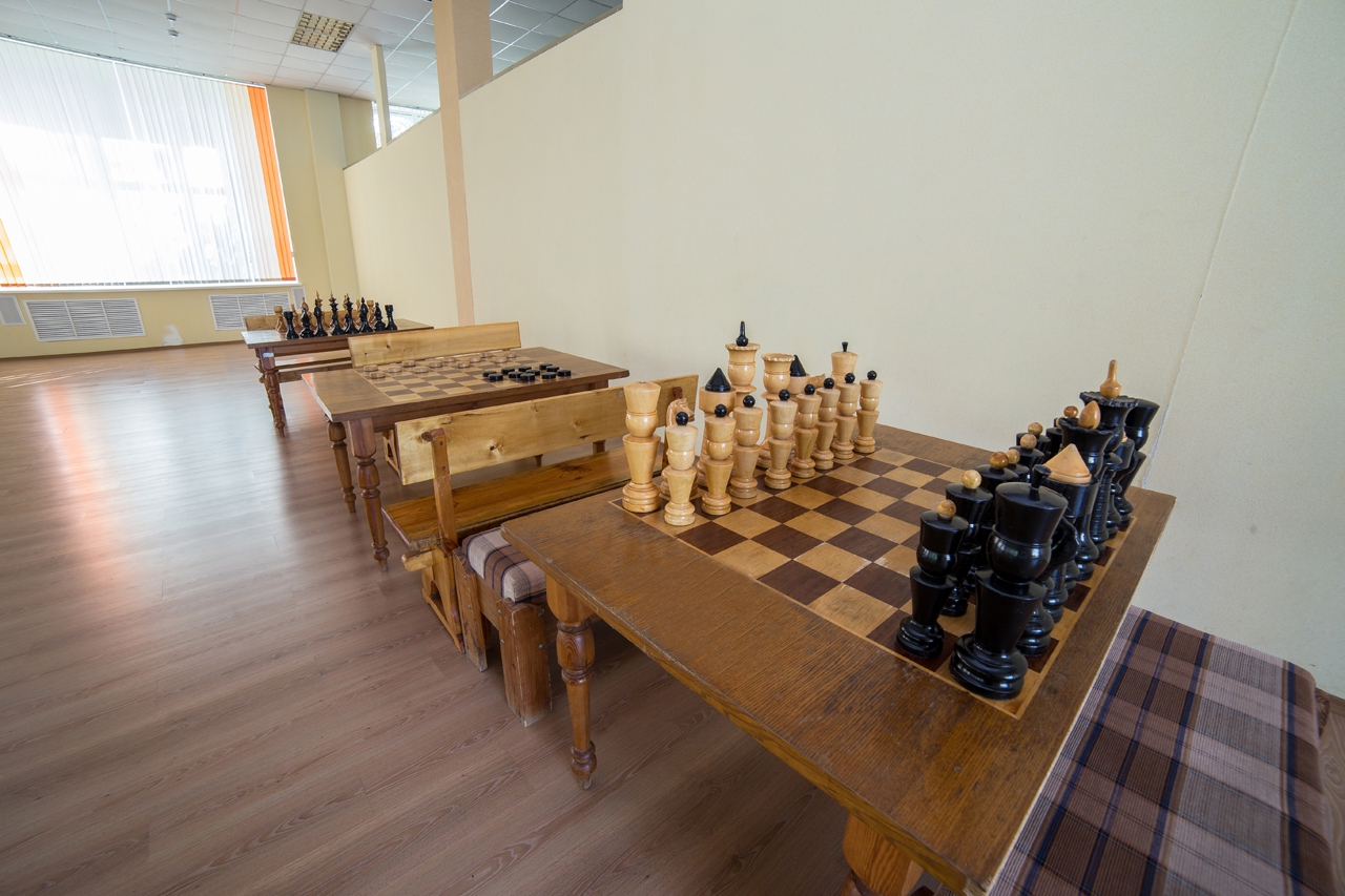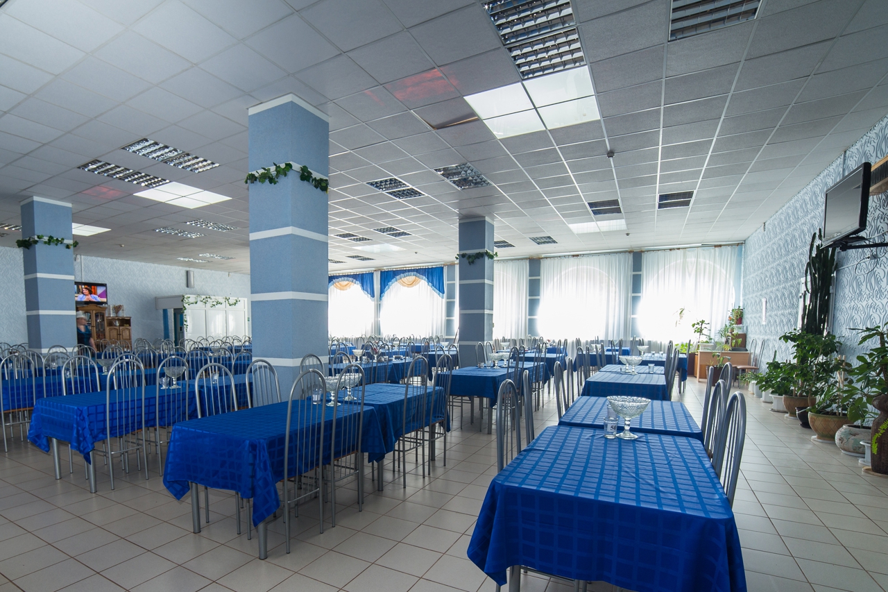 Санаторий организует 4-5-разовое питание по системе заказного меню со 2-го дня пребывания. В первый день дежерное меню. Столовая расположена в административном корпусе на 2 этаже. Обеденный зал на 240 мест.
