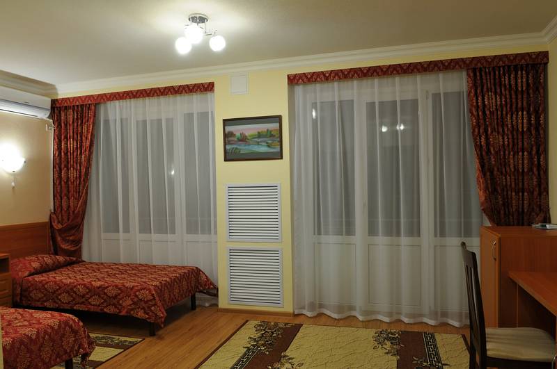 ЛОКсостоит из 4- и 7-этажного корпусов. Столовая, лечебный, спальный корпус в одном здании.