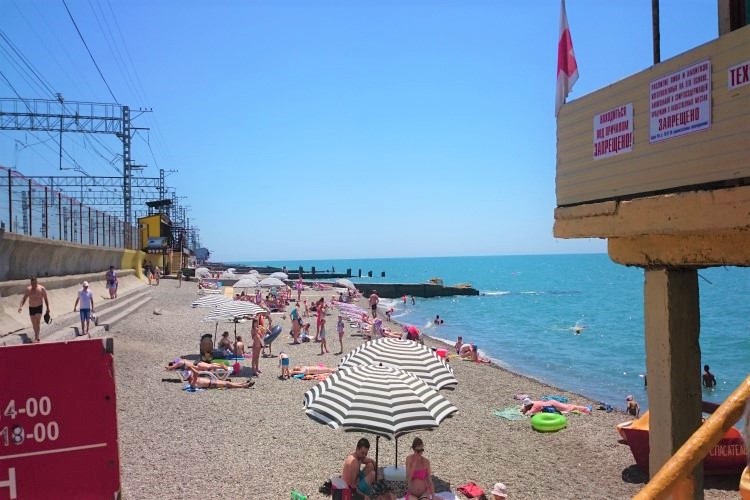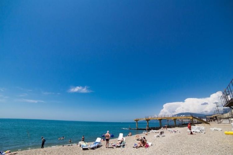 На расстоянии 150 м от корпуса санатория расположен городской пляж. На пляже имеется отсыпанная мелкой галькой береговая полоса длиной 90 метров. Пляжный инвентарь предоставляется по желанию гостя за отдельную плату.