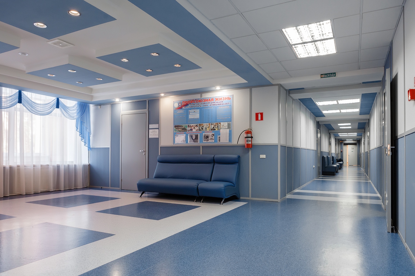 Единый 6-этажный комплекс, в котором размещаются жилой, медицинский и административный корпуса