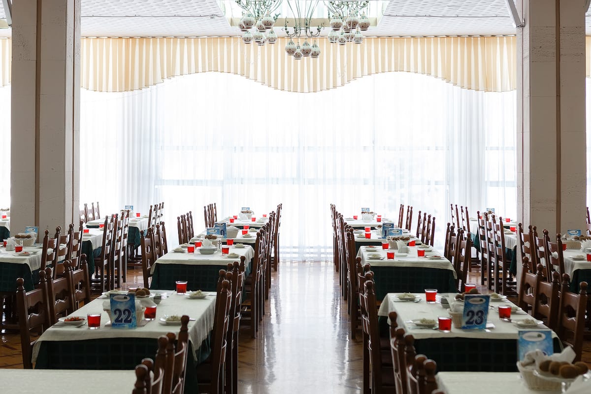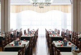 Для отдыхающих организовано 3-развоое питание по системе "заказное меню". Столовая рассчитана на 250 посадочных мест, находится в отдельном крыле единого корпуса. Возможна разработка индивидуальных диет.