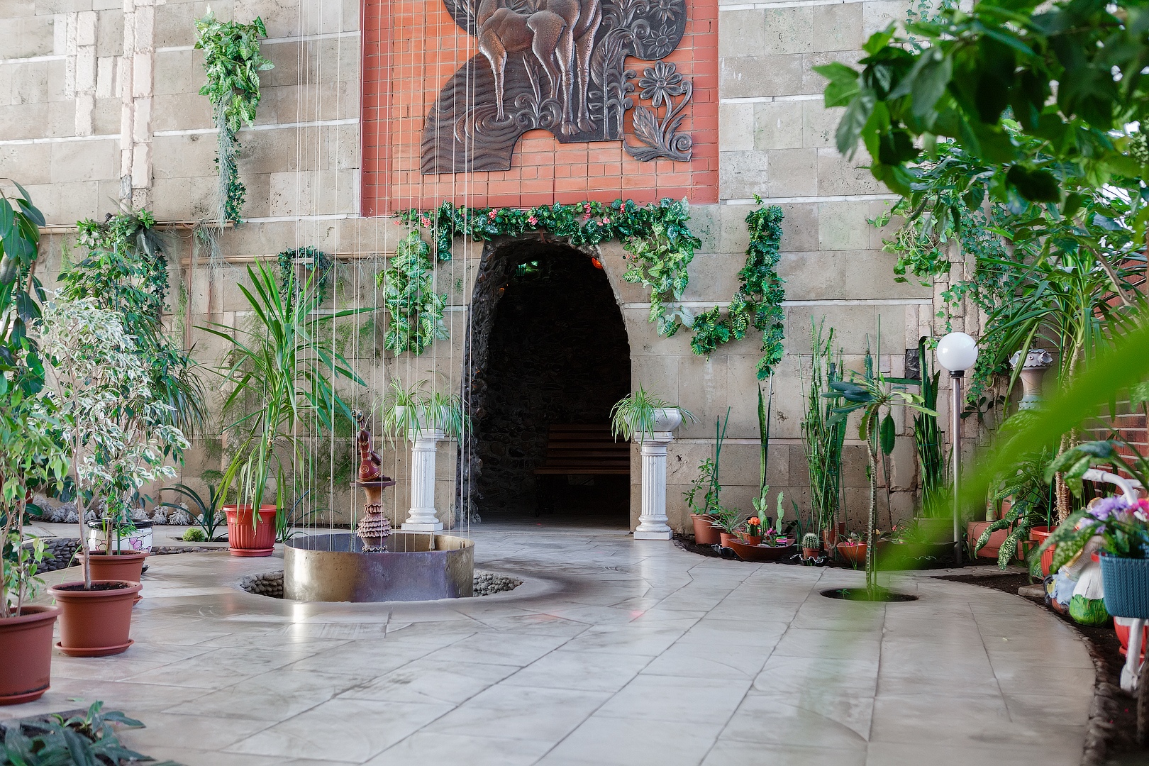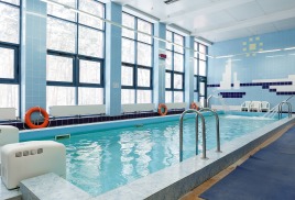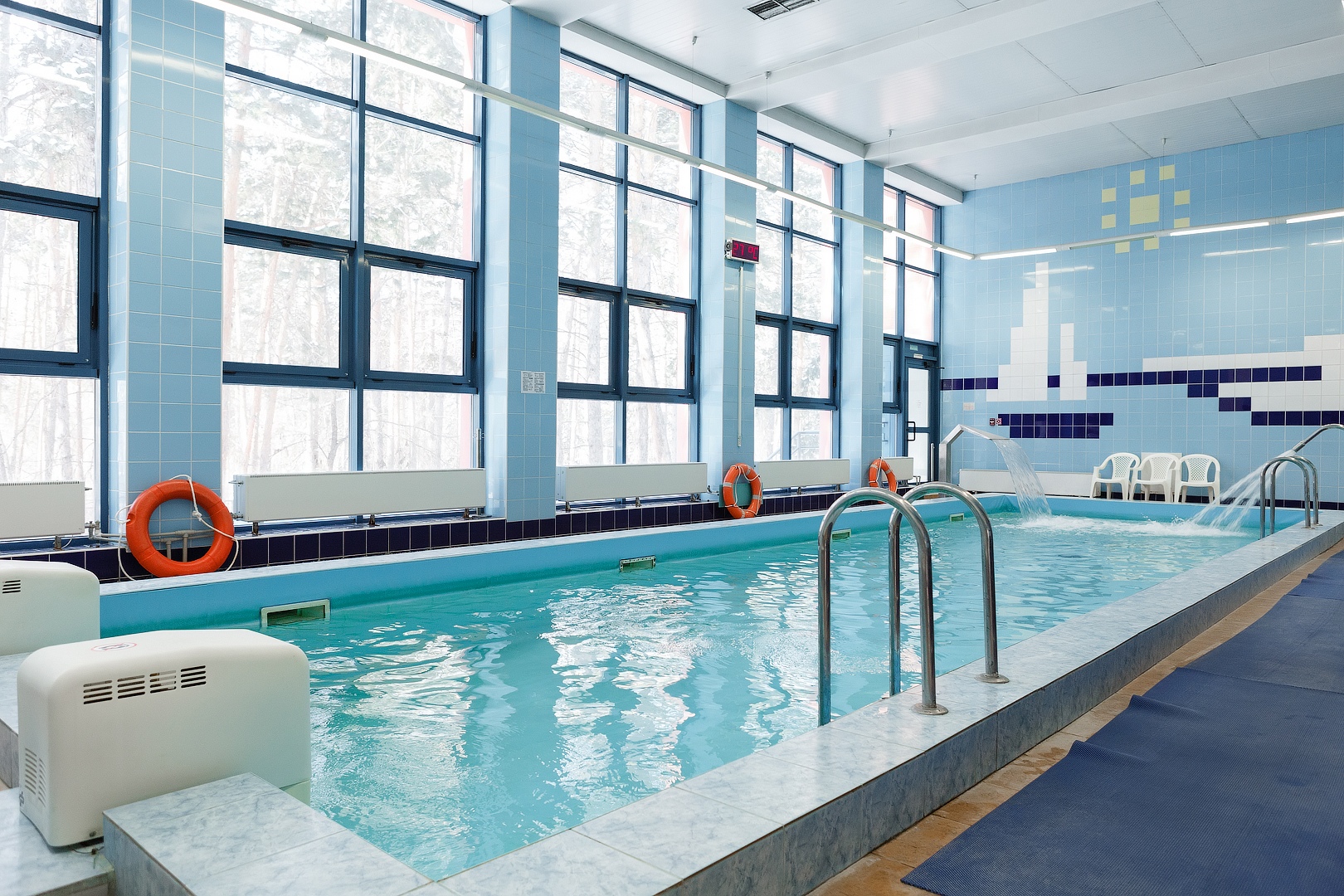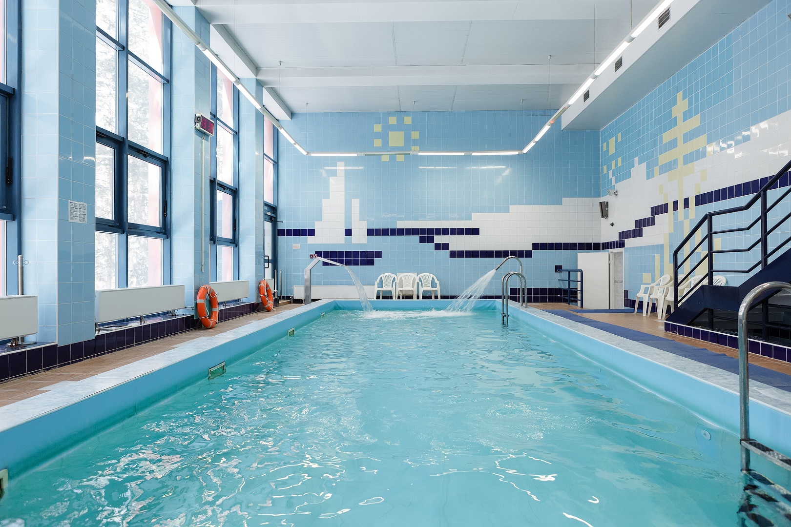 Круглый год функционирует крытый бассейн 4,1×12,6м. глубиной 1,2-1,8м. с двумя водопадами и донными гейзерами, оборудован системами противотока.