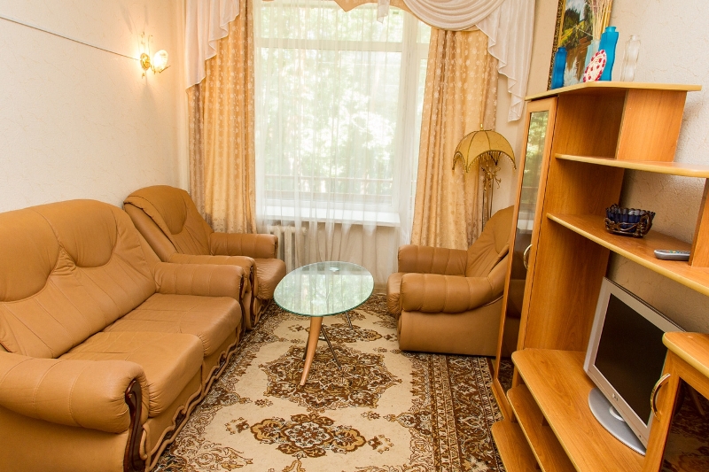 Посетители санатория живут в 7-этажном корпусе с лифтом, есть тёплые переходы в медицинский корпус, бассейн и столовую (административный корпус).
