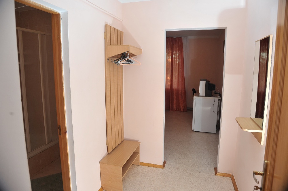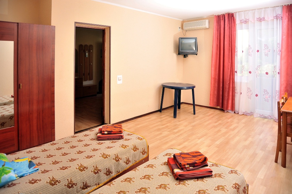 3,4-х местный 2-х комнатный номер Полулюкс. Площадь: 41 кв.м. В номере: гостиная с диваном или кроватью, спальня с двумя односпальными кроватями или одной двухместной, телевизор, холодильник, кондиционер, санузел совмещенный, с душевой кабиной, балкон.