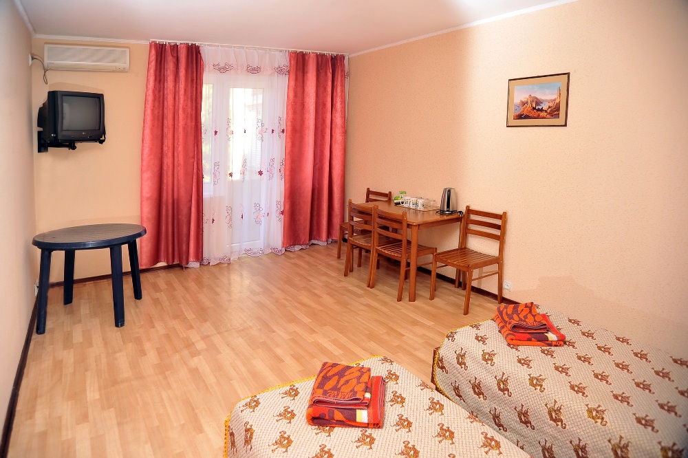 2-х местный 1-но комнатный номер стандарт с балконом / без балкона. Площадь номера 22 кв.м. В номере: кондиционер, телевизор, холодильник, 2 кровати, санузел совмещенный, с душевой кабиной. Дополнительное место еврораскладушка.В номерах с балконом вид на внутренний двор.