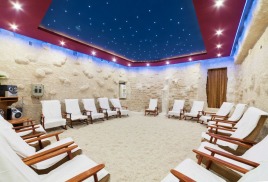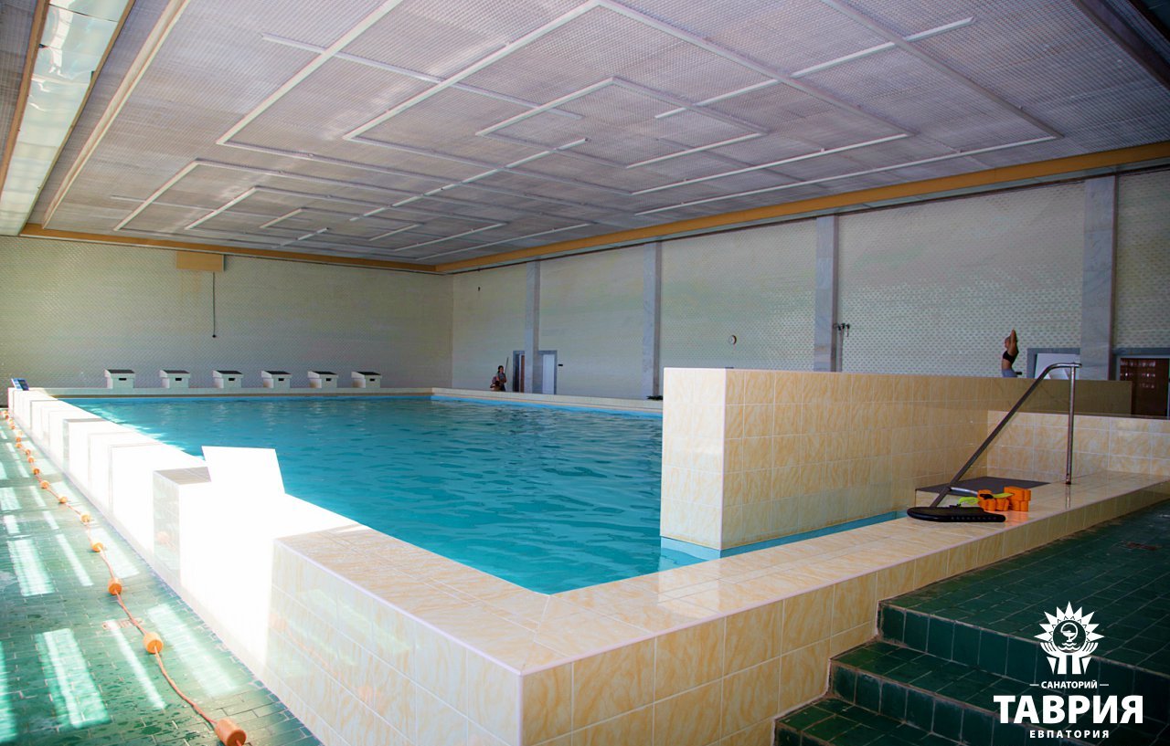 - закрытый плавательный бассейн с морской водой и подогревом (25 на 15 метров);