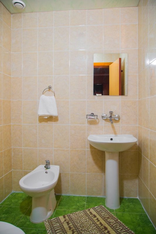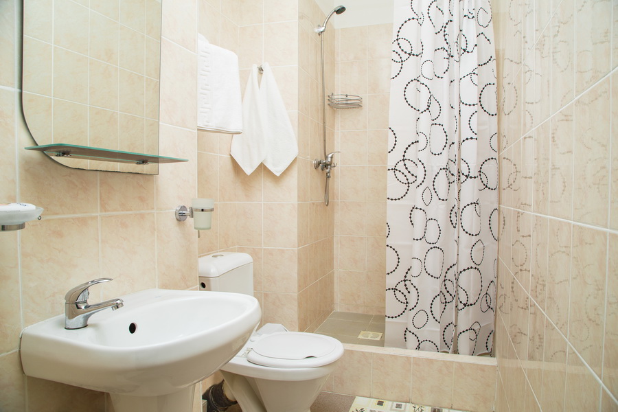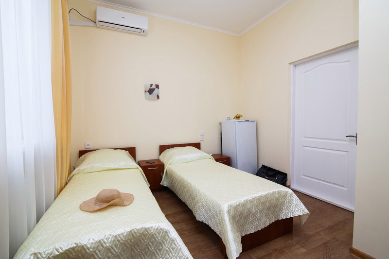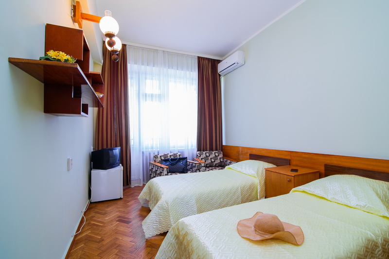 - 2-местный 1-комнатный стандартный. Площадь: 15 кв.м.. В номере: две односпальные кровати, кондиционер, телевизор, холодильник, санузел с душевой кабиной, балкон (часть номеров на северную сторону без балкона).