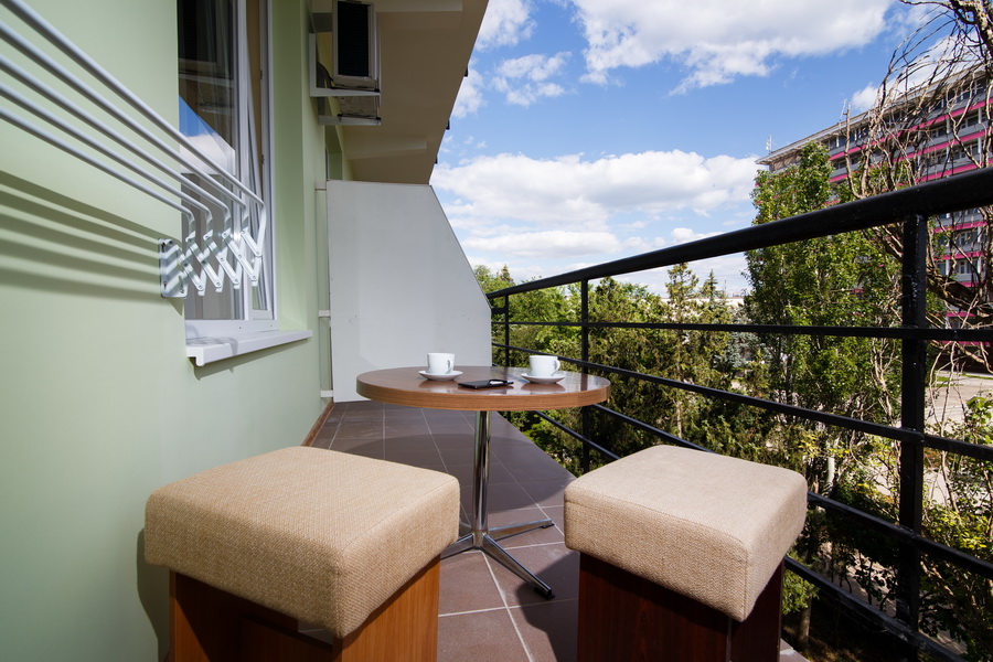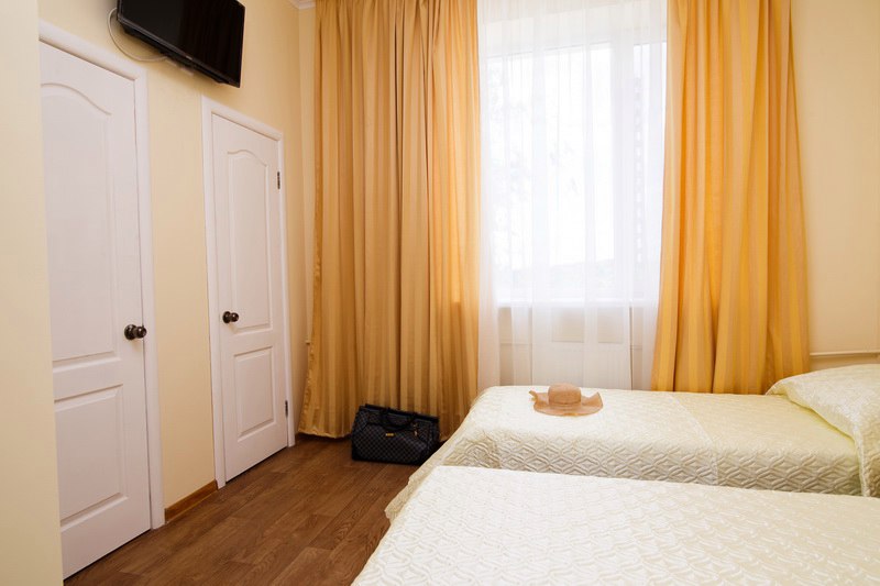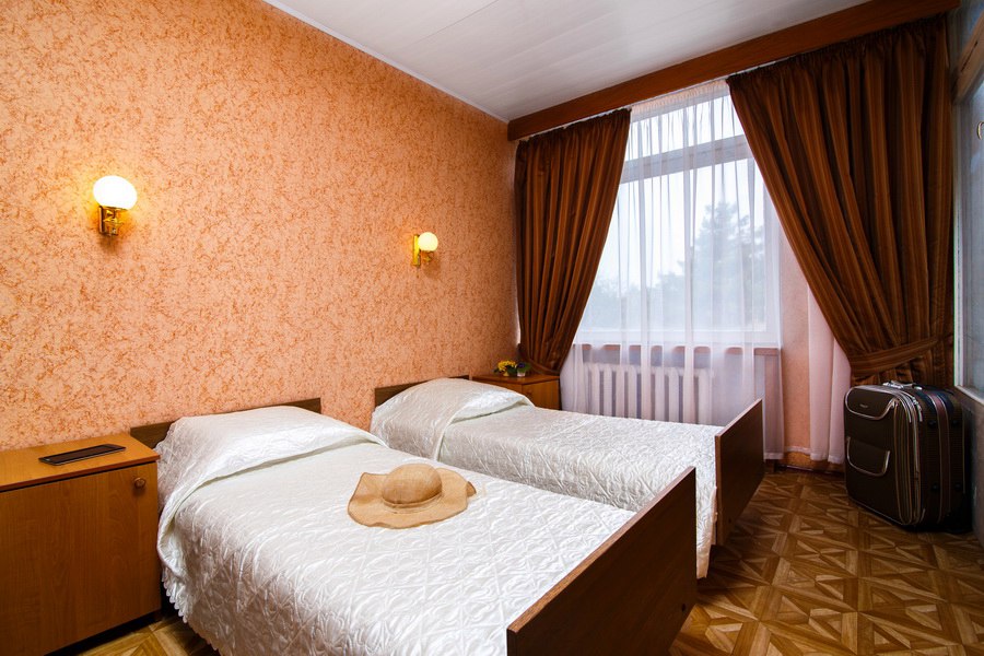 - 2-местный 1-комнатный стандарт улучшенный с балконом/ без балкона.Площадь: 11-15 кв.м. В номере: две односпальные кровати, кондиционер, телевизор, холодильник, санузел с душевой кабиной, балкон (в номерах с балконом).
