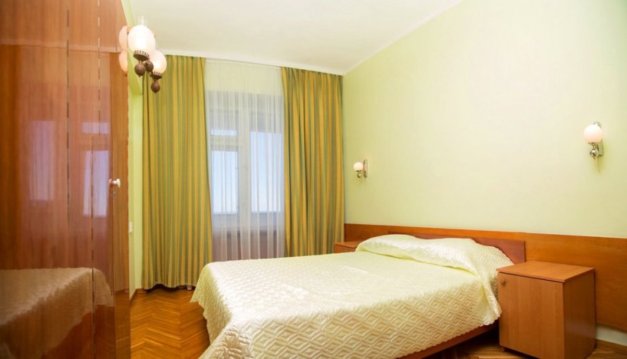 - 2-, 3-местный 2-комнатный Комфорт улучшенный. Площадь: 24 кв.м. В номере: спальня с двуспальной кроватью, гостиная с диваном, кондиционер, телевизор, холодильник, сейф, санузел с душевой кабиной, балкон (вид на парк).